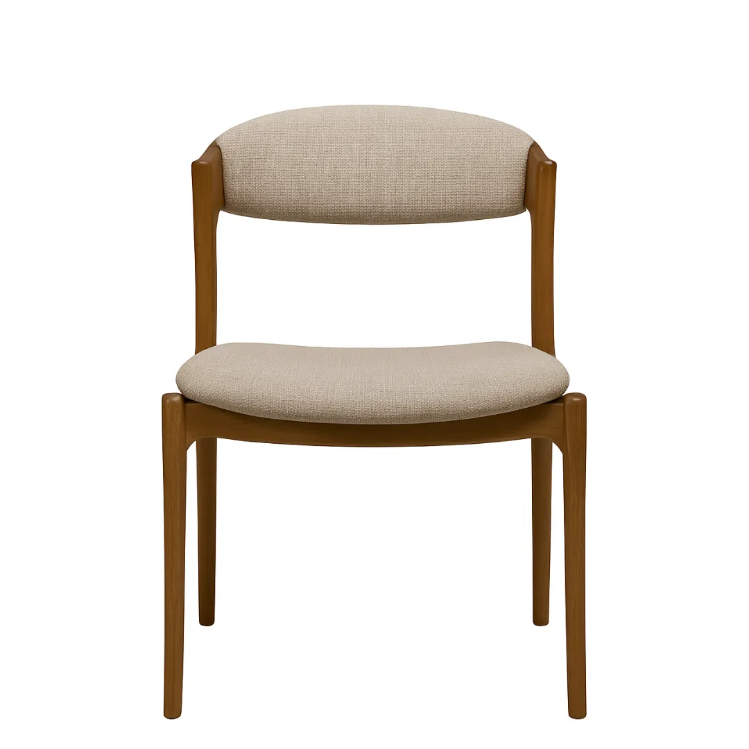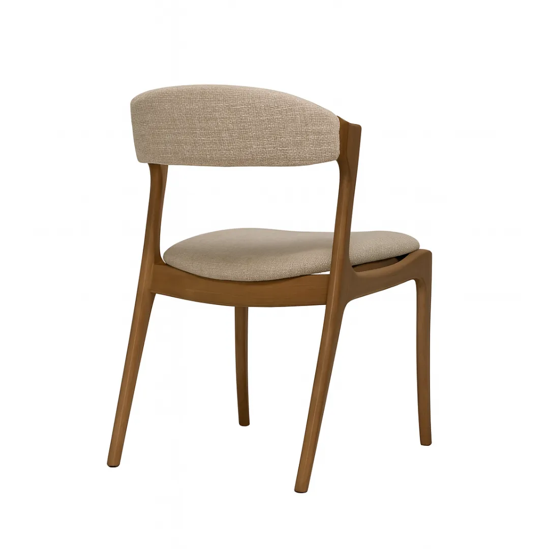 A Cadeira Meghan expressa a elegância do design atemporal com traços leves e fluídos. Sua estrutura em madeira maciça apresenta formas orgânicas e suavemente arqueadas. O encosto levemente curvado e o assento estofado em tecido texturizado conferem aconchego à peça, que se adapta com naturalidade a diversos ambientes. Uma peça que traduz delicadeza, ergonomia e refinamento.