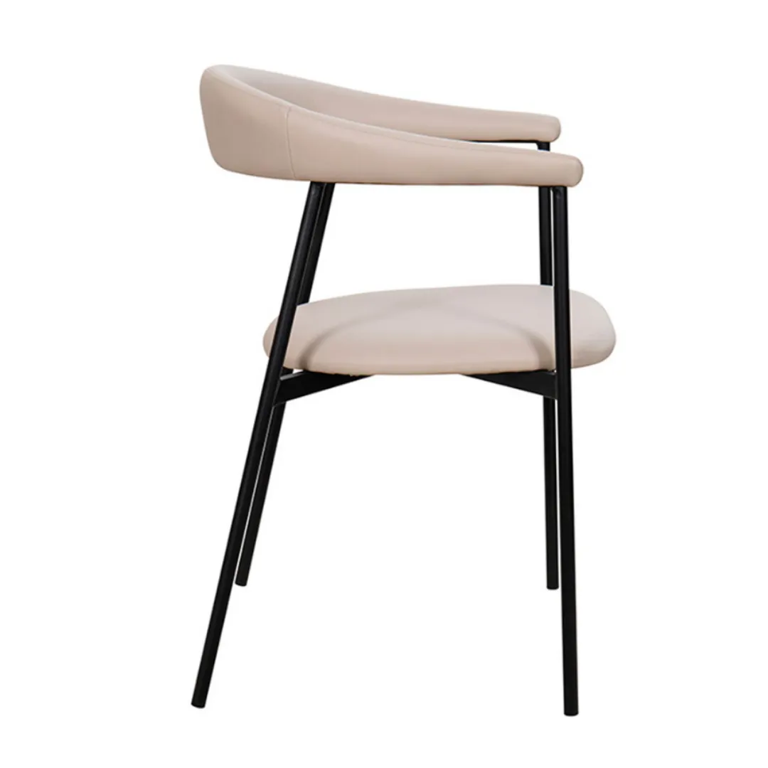 Cadeira de linhas minimalistas e elegância contemporânea. Possui estrutura metálica fina e resistente, com encosto curvo e assento estofado, que adiciona um toque sofisticado ao ambiente. Ideal para composições modernas e versáteis.