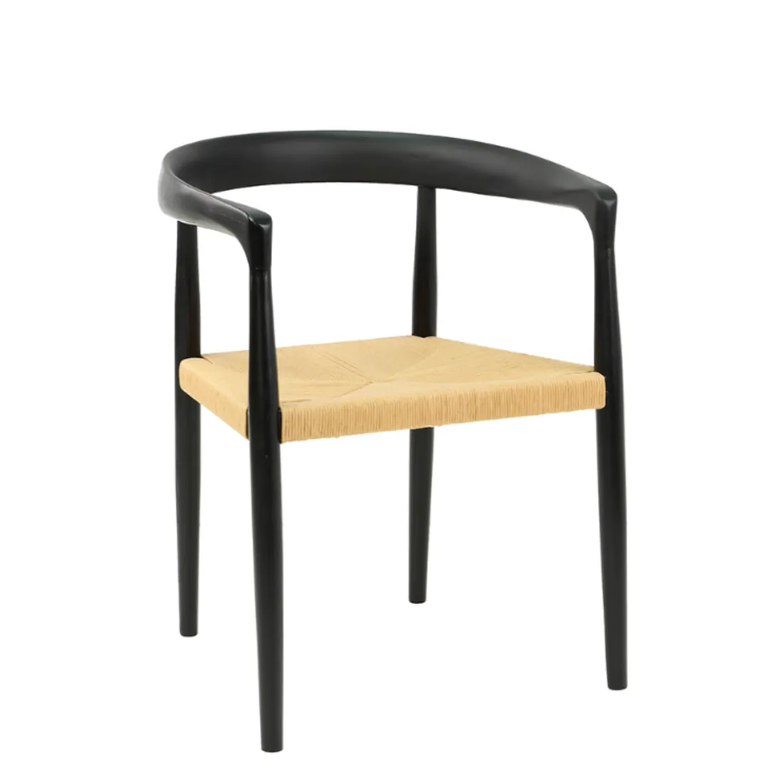 Cadeira em madeira de olmo com assento tramado em corda natural.