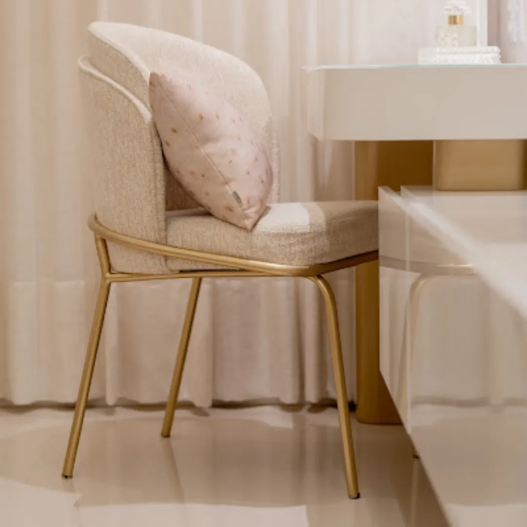Com estrutura em aço carbono galvanizado e formas envolventes, a Cadeira Suzy combina contemporaneidade e leveza visual. Seu encosto curvo estofado abraça o corpo com suavidade, criando uma peça que une conforto e elegância.