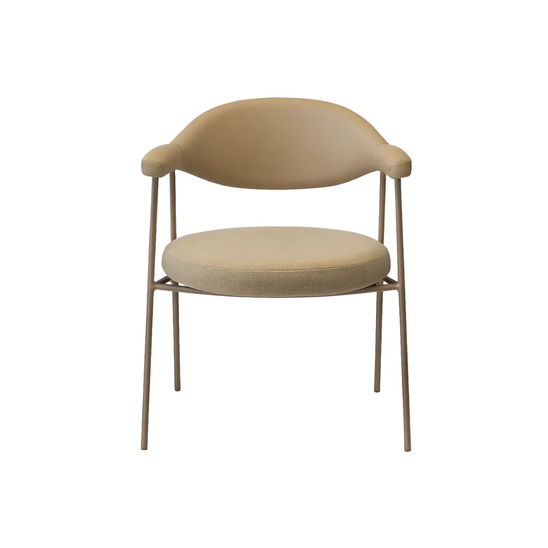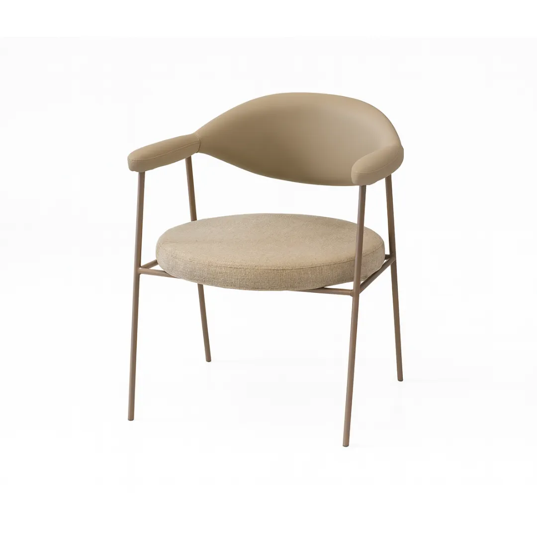 Design contemporâneo com linhas curvas suaves, leveza nos detalhes e ergonomia no toque. A cadeira Tyna possui estrutura em aço caborno galvanizado, com assento, encosto e braços estofados.
