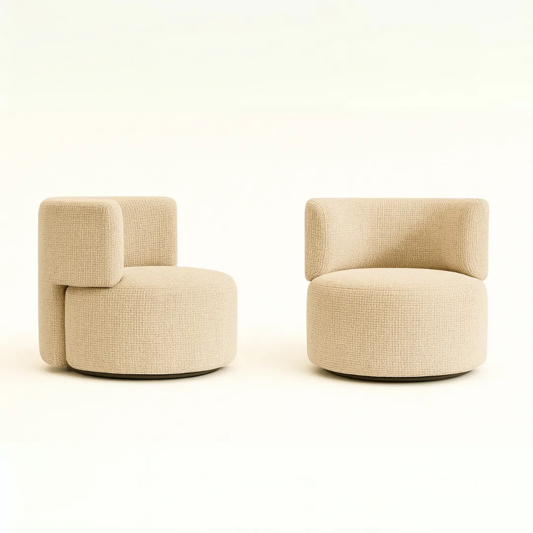 Design contemporâneo com formas arredondadas e encosto envolvente.