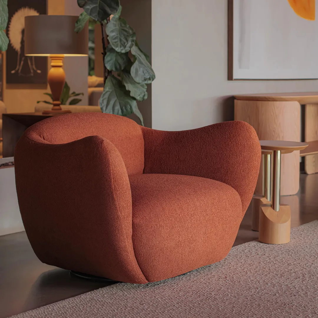 Com curvas marcantes e estrutura imponente, a Poltrona Capri une conforto e presença. Inspirada na força dos chifres caprinos, sua forma escultural traz elegância e personalidade ao ambiente, criando uma peça de impacto e sofisticação.