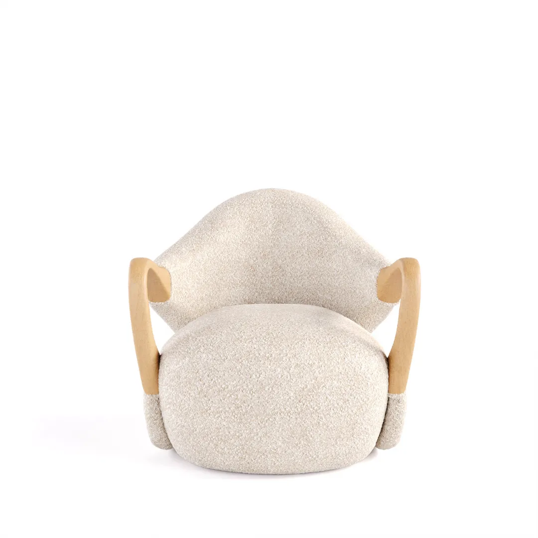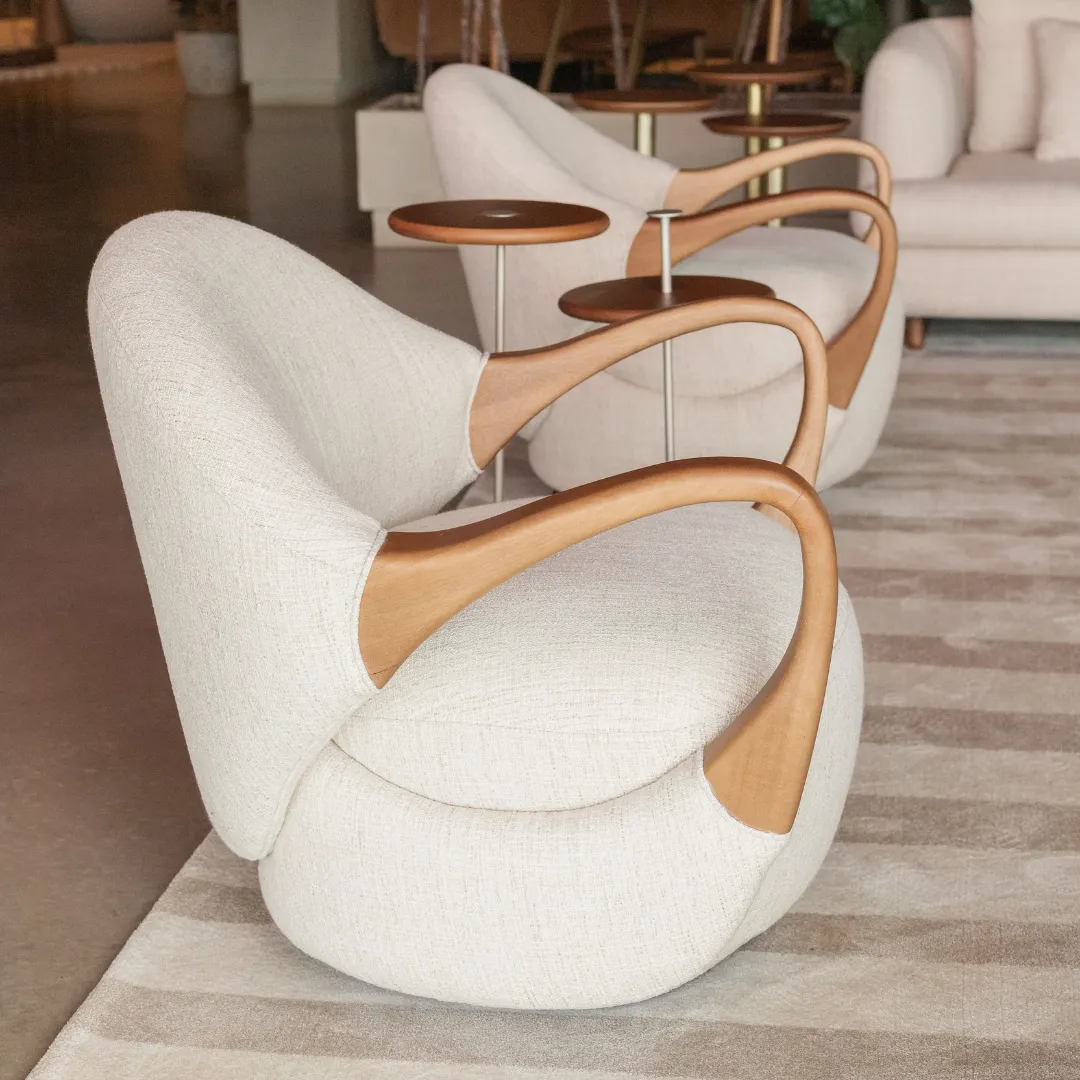 Inspirada no mito grego de Ícaro, exibe braços em madeira maciça torneada que lembram elegantes asas. Seu design orgânico e curvo oferece conforto e imponência com leveza artesanal, enriquecendo o ambiente com sofisticação e fluidez.
